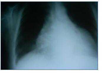 Dear Editor, Microscopic polyangiitis is a necrotising vasculitis primarily affecting the glomeruli (vasculitis limited to the kidney may be the only manifestation), and secondly, the lungs, but it is a systemic process that may affect small blood vessels in any part of the body. High blood pressure is the most common cardiovascular manifestation. We present the case of a patient with sub-acute deterioration of renal function and affected pericardium who responded well to steroid treatment. This 60-year old female patient with a history of diabetes mellitus that was diagnosed three years before, with no microangiopathy or macroangiopathy and high blood pressure during ten years which was treated with carvedilol, hydrochlorothiazide and valsartan. One year before, her creatinine level was 0.8mg/dl, GFR (MDRD) > 60 ml/min/1.73m, and systemic/urine sediment showed no abnormalities. In the six weeks prior to admission, she reported progressive weakness, followed by fever and dry cough. She did not present dyspnoea, chest pain, or diuresis alterations. The examination revealed blood pressure of 190/80mmHg, breathing well, with high jugular vein pressure, rhythmic cardiac sounds with pericardial rub, normal bilateral hemithorax ventilation and no oedema. The analysis showed haemoglobin levels of 7.7mg/dl, urea 217mg/dl, creatinine 4.5mg/dl, potassium 3.6mEq/l, 98% baseline saturation; in the urine; proteinuria of +++ and 60 red blood cells/field. The ECG was normal. The chest radiography showed severe cardiomegaly (figure 1). An emergency echocardiography showed a moderate-to-severe pericardial effusion. Ultrasound showed no kidney alterations. Treatment was started with doses of steroids at 1mg/kg/day, and the patient’s state improved considerably in a few days. With regard to the laboratory results, the direct Coombs test was negative, haptoglobin was 4g/l, LDH 370U/l, C3 and C4 within the normal range, ANA was negative, ANCA was positive, with a p-ANCA pattern. Reactivity analysed by the ELISA test corresponded to antimyeloperoxidase of 146U/ml. Proteinuria was 2g/24 hours. The percutaneous renal biopsy of a total of 17 glomerules was compatible with focal proliferative glomerulonephritis, with crescents at 50% and significant tubulointerstitial involvement. A dose of IV cyclophosphamide was recommended, and the echocardiography was repeated (a day before cyclophosphamide bolus administration) with no signs of the pericardial effusion. After a stay of 18 days, she was discharged with a creatinine value of 1.8mg/dl. In small-vessel vasculitis, it is possible to have primary or secondary cardiac involvement relating to high blood pressure, immunosuppressants, the inflammatory state and the kidney disease that can contribute to developing cardiac hypertrophy, bacterial endocarditis and coronary disease.1,2 As a primary manifestation of the disease, cardiac involvement is more frequent in Churg-Strauss disease, where 13-47%1,3 of all patients have a myocardial, endocardial or pericardial lesion. With regard to the incidence rate for pericardial involvement, whether in the form of acute pericarditis and pericardial effusion or as chronic constrictive pericarditis, its range is estimated between 8 and 32% in Churg-Strauss syndrome and 19% in Wegener’s granulomatosis.5 With regard to microscopic polyangiitis, its unusual presentation as a pericardial effusion caught our attention, and in fact, the literature we consulted contained no references to such an event. Finding it in inflammatory state and the kidney disease that can contribute to developing cardiac hypertrophy, bacterial endocarditis and coronary disease.1,2 As a primary manifestation of the disease, cardiac involvement is more frequent in Churg-Strauss disease, where 13-47%1,3 of all patients have a myocardial, endocardial or pericardial lesion. With regard to the incidence rate for pericardial involvement, whether in the form of acute pericarditis and pericardial effusion or as chronic constrictive pericarditis, its range is estimated between 8 and 32% in Churg-Strauss syndrome and 19% in Wegener’s granulomatosis.5 With regard to microscopic polyangiitis, its unusual presentation as a pericardial effusion caught our attention, and in fact, the literature we consulted contained no references to such an event. Finding it in this case was achieved by hearing the pericardial rub; together with a compatible radiography, this led us to order the echocardiography that confirmed our diagnosis. She began steroid treatment early, with an excellent response. As a result of this experience, we must consider the possibility of pericardial involvement in this type of vasculitis. Proper examination and evaluation of simple complementary tests that are available in every hospital continues to be the fundamental pillar of a correct diagnostic and therapeutic approach.