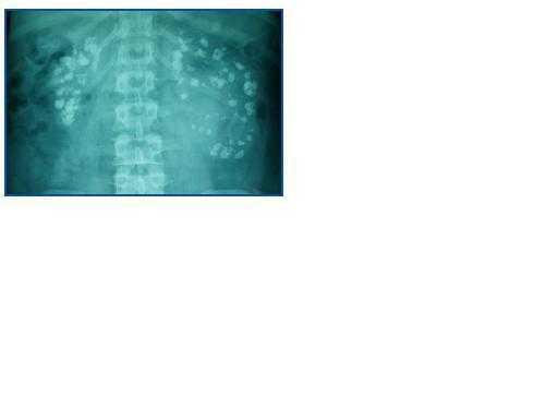 Apartir de los 25 años de edad, desarrolla litiasis renal bilateral con complicaciones e ingresos hospitalarios frecuentes en los últimos 10 años. Destacan cólicos renales bilaterales, con desarrollo de calle litiásica espontánea, que en algunas ocasiones se han resuelto con expulsión espontánea de las litiasis y, en otras, han requerido canalización uretral con doble J y litotricia. Varios de ellos han ocasionado obstrucción de la vía urinaria con hidronefrosis y fallo renal agudo sobreañadido a su enfermedad renal crónica, con resolución tras la expulsión litiásica.