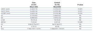 Table 2. Carotid intima-media thickness and its parameters in children with nephrotic syndrome compared to healthy children