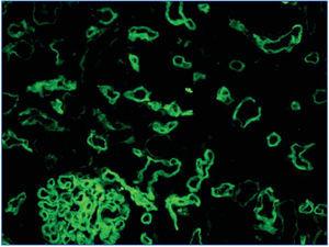 Figure 2. C4d deposits. Immunofluorescence