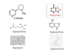 Figure 2. Allopurinol and hypoxanthine molecules compared with known molecules that act on nicotine receptors in the brain.