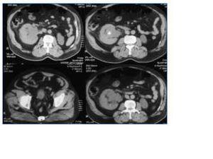 Varón de 70 años con antecedentes de hemorragia digestiva alta por ulcus bulbar, duodenitis y hernia hiatal, hipertensión arterial y cólico nefrítico derecho hace 4 años en donde es informado de anulación funcional de riñón izquierdo.