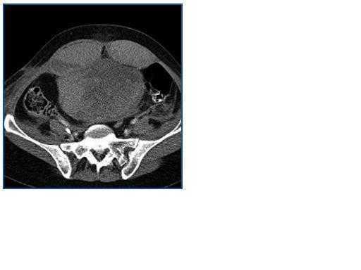 Tratada con metilprednisolona, ciclofosfamida y plasmaféresis (anticoagulación con citrato y reposición inicialmente con albúmina y posteriormente combinada con plasma) persiste deterioro de función renal con creatinina de 8,4 mg/dl y oliguria iniciándose hemodiálisis sin heparina. A los 13 días presenta dolor en higastrio y fosa iliaca izquierda tras un episodio de tos. Aparece una masa abdominal y anemización de 4 puntos. El TAC abdominal objetiva un hematoma de la vaina del recto anterior izquierdo (Figura 1). Se trasfunden 3 concentrados . El estudio de coagulación incluyendo factores es normal excepto Yvy de 10 minutos. Tres días después nuevo dolor en fosa iliaca derecha, con íleo paralítico y anemización de 3 puntos. El TAC objetiva un hematoma en ambos músculos rectos anteriores que se extiende hacia el espacio de Retzius y pelvis (Figura 2). Precisa 4 concentrados de hematíes. Se consulta con el servicio de cirugía y radiología intervencionista decidiendo tratamiento conservador expectante y asociar antibióticos (amoxicilina clavulánico) así como nutrición parental.
