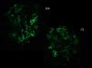 La biopsia era compatible con GNPI IgA dominante; mostraba una expansión de la matriz mesangial de manera global y difusa, con un incremento focal de la celularidad mesangial, así como un patrón exudativo de las asas capilares glomerulares. Además, un 17% de los glomérulos mostraba una proliferación extracapilar con semilunas de tipo celular (fig. 1). En la inmunofluorescencia directa se observó depósito con un patrón granular, a nivel mesangial y en las paredes de los capilares glomerulares, de IgA (+++) y de C3 (++), sin restricción de cadenas ligeras, siendo negativas para IgG, IgM, C1q y fibrinógeno (fig. 2). Aunque en nuestro caso no se hizo, en la GNPI IgA dominante la microscopia electrónica suele mostrar depósitos electrón-densos subepiteliales (humps) y mesangiales1,4.