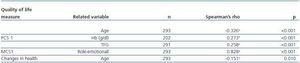 Upon analysing dimensions and summary measures we found a better level of quality of life in role-emotional and social functioning; body pain, general health and changes in health were rated lower by patients. The summary measure for physical health was more affected than that for mental health.