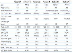 Of the 277 patients undergoing predialysis and haemodialysis in our area, 11 kidney transplant candidates with chronic liver disease were referred to the hepatology department to assess their hepatic situation before their condition progressed to advanced CKD or being included on the kidney transplant waiting list.