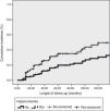 Five patients progressed to dialysis and 13 patients doubled serum creatinine. One hundred and seventy out of 324 patients suffered a fall of eGFR (group A) and 154 patients did not modify their GFR along follow-up time, or even increased it (group B). Differences in analytical and cardiovascular factors between both groups are showed in Table 1. Male gender (p=0.001), albuminuria>100mg/day (p=0.02) and higher pulse pressure (p=0.025) accelerated renal disease progression. Patients with nephrectomy had lower kidney disease progression than patients with unilateral renal agenesis or atrophy (p=0.022).