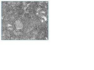 Presentamos el caso de un varón de 74 años que ingresó en Nefrología con diagnóstico de Insuficiencia Renal Crónica agudizada precisando hemodiálisis de urgencia. Acudió al hospital por cuadro de malestar general, astenia, diarrea y náuseas de cinco meses de evolución. Aportaba analítica realizada por el Servicio de Digestivo tres meses antes con creatinina de 2 mg/dl. En la exploración: palidez generalizada, corazón arrítmico, hipoventilación en bases pulmonares, ingurgitación yugular, hepatomegalia y edemas en miembros inferiores. En la analítica destacaba: anemia, plaquetopenia; retención nitrogenada (creatinina 13 mg/dl) y acidosis metabólica. En los estudios posteriores se observó: VSG, gammaglobulina IgM y cadenas Kappa elevadas. Fenómeno de rouleaux. Ausencia de cadenas ligeras en orina. Aspirado y biopsia de médula ósea: Infiltración de linfocitos con diferenciación plasmocitoide. Estudio inmunológico por citometría de flujo compatible con linfoma linfoplasmocítico. Biopsia renal: 22 glomérulos histológicamente normales y 3 esclerosados. Intersticio infiltrado por linfocitos atípicos de pequeño tamaño, linfocitos plasmocitoides y células plasmáticas provocando ensanchamientos marcados del intersticio renal (fig. 1). Por técnica de inmunohistoquímica las células malignas fueron positivas para los antisueros CD20 y CD43.