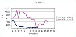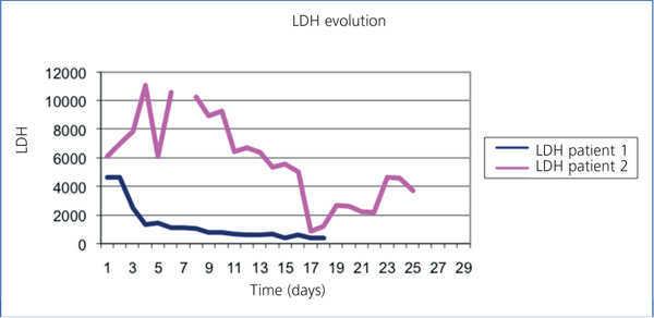 Figure 1. Comparing LDH evolution in two patients.