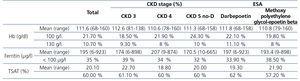 Table 1. Values of haemoglobin, ferritin and the rate of transferrin saturation according to the stage of renal function and the type of erythropoiesis-stimulating agent.