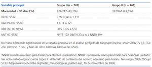 Principal: mortalidad por cualquier causa en los 90 días tras aleatorización.