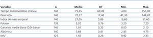 - Debido a que hay pacientes que por circunstancias diversas pueden recuperar parte de la diuresis residual, se han excluido del estudio a los pacientes con ganancias medias menores o iguales a 500 ml/24 h. Un total de 11 pacientes se excluyeron según este criterio.