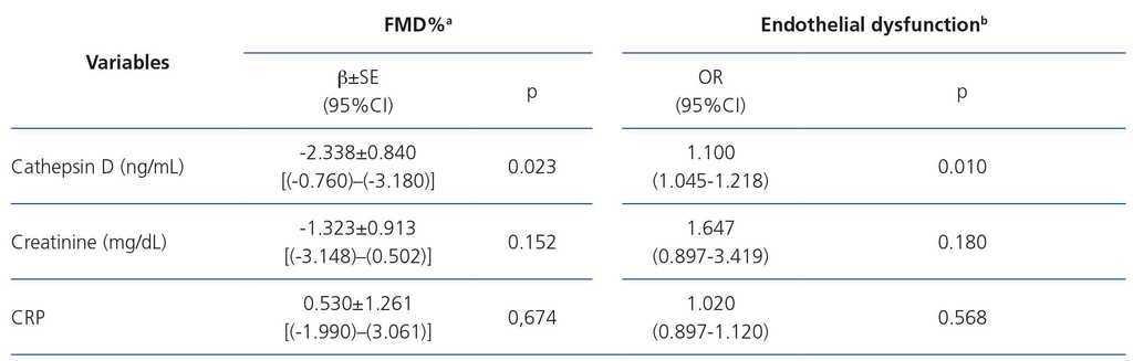 Table 4. Independent predictors of FMD% and endothelial dysfunction for multivariable regression analysis