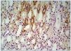 Figure 3. Weak, focal immunoexpression of ghrelin in tubular epithelium of thin portion of the Henles loops and distal tubuli in PG patient. x200.