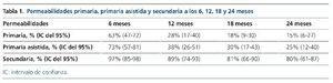 – Análisis de las permeabilidades: primaria, primaria asistida y secundaria a los 6 meses del estudio.