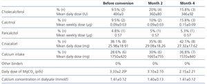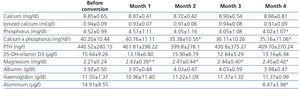 Table 2. Change in laboratory parameters after replacing aluminium hydroxide with calcium acetate/magnesium carbonate.