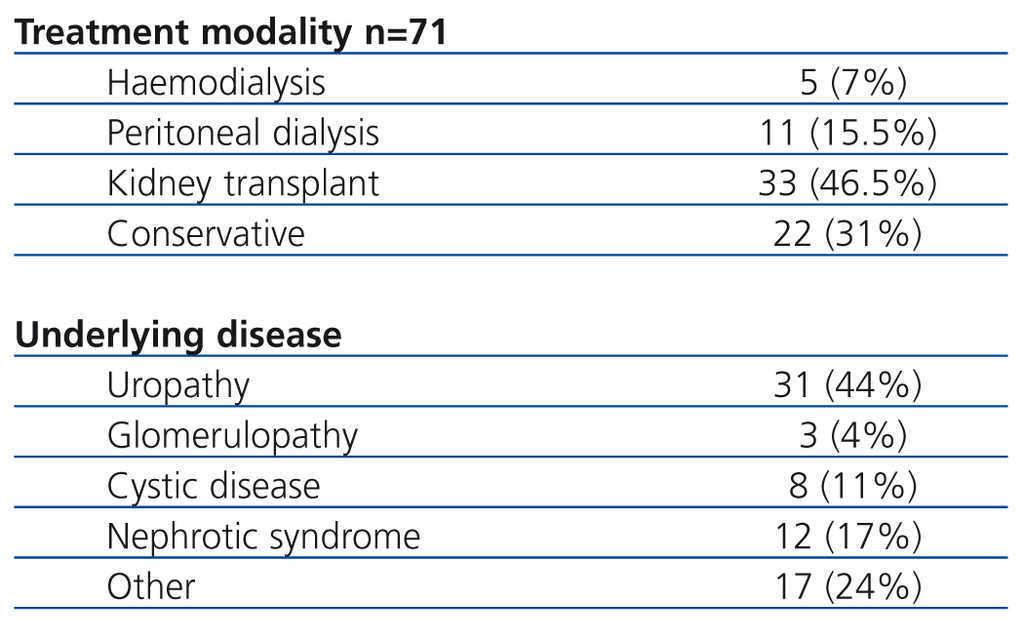 Table 4. Arterial hypertension, short stature, bone deformations, fluid restrictions, diet restrictions, and pharmacological treatment