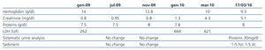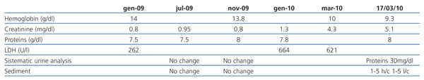 Answer. The initial renal function impairment that was observed in January 2010 (Table 1) was attributed to possible functional factors in the context of community-acquired pneumonia, which was treated with broad-spectrum antibiotics. This datum was the main reason for the delay in diagnosis, which favoured significant renal function impairment.