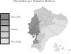 Mapa de la tasa de mortalidad por diabetes mellitus en Ecuador. En Ecuador la mortalidad causada por diabetes mellitus fue mayor en las provincias de Guayas, Los Ríos y Manabí, ubicadas en la costa del océano Pacífico. Mapa de la tasa de mortalidad por diabetes mellitus (muertes/100.000 individuos por año, INEC 2011). Esta figura es parte de una figura publicada originalmente por Neira-Mosquera y col.6 con leves modificaciones (con permiso para reproducción).