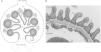 La barrera de filtración glomerular. A: representación esquemática del glomérulo, la barrera filtración glomerular (BFG) formada por los podocitos (P), la membrana basal glomerular (MBG) y el endotelio. El ultrafiltrado del plasma atraviesa la BFG (flecha negra) para llegar al espacio urinario (EU). Los podocitos (verde) contactan varios capilares glomerulares (representados como círculos rojos) y el mesangio intraglomerular (M). La MBG (línea negra) envuelve los capilares y rodea al mesangio. El endotelio glomerular está simbolizado por una línea celeste entrecortada, ubicada entre la luz capilar (LC) y la MBG, el polo vascular en la parte inferior del glomérulo, el polo tubular en la parte superior. B: Ultraestructura de la BFG observada con un microscopio electrónico. Los podocitos, la MBG, el diafragma de filtración (DF) y el endotelio fenestrado. El ultrafiltrado del plasma atraviesa la BFG, flecha amarilla, desde la luz capilar (LC) al espacio urinario (EU).