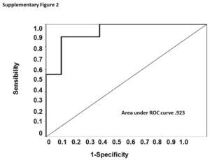 When evaluated the urinary TWEAK levels in female group, we establish a cut-off point of 7.59pg/mg Cr and the ROC curve showed a sensitivity of 88% and specificity of 90% with an area under the curve of 0.93 (CI 0.940–1.0), however in the male group we could not determinate a cut-off point with an adequate sensibility and specificity. (Supplementary figure 2).