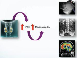 Al ingreso se objetivan cifras de parathormona (PTH) >5.000pg/m (límite alto de la normalidad para su edad, 78pg/ml), cifras compatibles con hiperparatiroidismo primario neonatal severo. Actividad tiroidea normal. A destacar déficit de vitaminaD (VitD): 16ng/ml, en probable relación con déficit materno.