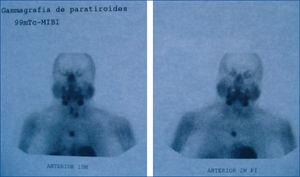 Figura 1. Gammagrafía de paratiroides con Tc-sestamibi.