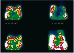 Figura 1. Gammagrafía peritoneal con 99mTc-MAA