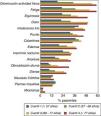 Las prevalencias de síntomas desglosadas según cuartiles de edad se muestran en la figura 2. El DMEC y otros síntomas como la fatiga y disminución de la actividad física se incrementaban notablemente en los 2 cuartiles superiores de distribución de edad (>69 años).