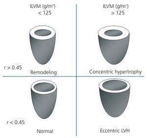 Data were processed using the SPSS 15 program. Results are expressed as mean, standard deviation for data with normal distribution; and as median, interquartile range (IQR) and confidence interval (CI) for data that did not have normal distribution. We performed the comparison of means with the Mann-Whitney and Student’s-t test according to the distribution of the variables. Linear regression was performed with Pearson's p. To compare means between the two groups, we performed ANOVA for one factor with Bonferroni and Dunnett's C post-hoc tests, according to the homogeneity of variances. Values of P<.05 were considered statistically significant. We performed a multivariate analysis, using eccentric LVH as the dependent variable and the other study variables as independent variables.