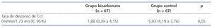 Se produce un menor descenso de la tasa de Ccr en el grupo tratado con bicarbonato con significación estadística a partir de