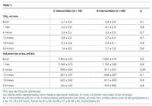 – Los regímenes de 3 y 4 intercambios tienen efectos similares sobre la TFG, volumen de diuresis residual y tiempo de desarrollo de anuria en un seguimiento de 2 años.