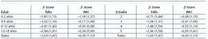 Había un 7% (42 pacientes) que estaban desnutridos, con un Z-Score del IMC de —1,88 o peor y la mayoría de ellos también se encontraban en el grupo de edad de 0-2 años. Es decir¿los niños menores de 2 años eran los que presentaban un peor crecimiento y entre quienes se encontraban el mayor número de pacientes desnutridos.