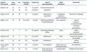 Lastly, several renal or extrarenal tumours could be associated with several types of glomerulopathies: with minimal changes, IgA nephropathy, membranous, extracapillary proliferative and amyloidosis.10,13-15 Most authors that have described the association between RAC and FSG reach the conclusion that the most determining factor is glomerular hyperfiltration due to reduction of functioning renal mass, as we believe has occurred with our patient.