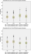 Los pacientes son agrupados por género y presencia de DM. Los percentiles 25, 50 y 75 de ITM e ITG se calculan para cada uno de los 4 grupos (fig. 1).
