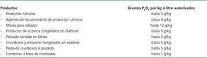Tabla 2. Gramos de P2O5 por kilo o litro autorizados en distintos productos cárnicos y pescados según el Reglamento (UE) Nº 1129/2011
