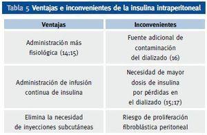 Tabla 5. Ventajas e inconvenientes de la insulina intraperitoneal