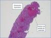 El paciente, desde el punto de vista renal, se mantiene en anuria desde entonces, con necesidad de hemodiálisis, sin ningún signo de recuperación. Se practica una angio-TAC de control que evidencia una hipoperfusión cortical. Una vez normalizadas las plaquetas, con tratamiento quimioterápico, se realiza biopsia renal percutánea (7 de junio de 2013): con 19 glomérulos, 16 de los cuales presentan severos cambios propios de necrosis de coagulación con destrucción completa de todos los elementos celulares secundarios a la isquemia. En tres de ellos se observan los mismos signos, pero con conservación de sus núcleos, así como mesangiolisis, engrosamiento de las membranas con presencia de hematíes (esquistocitos), y ocasionales polimorfosnuclares (PMN), sin dobles contornos, ni semilunas, ni necrosis fibrinoide del ovillo capilar, ni de la arteriola aferente. En el ámbito intersticial se evidencia una necrosis cortical difusa con presencia en el ámbito de la unión córtico-medular y medular de túbulos con cilindros hemáticos, pigmento hemosiderínico, cambios isquémicos celulares con pérdida del ribete en cepillo y marcada atipia nuclear, parches de infiltrado inflamatorio crónico y de fibrosis leve. A nivel vascular, arterias de mediano calibre, presencia de degeneración mucoide intimal con oclusión luminal y cambios fibrosos miointimales incipientes, que confirma el diagnóstico de necrosis cortical coagulativa con cambios vasculares compatibles con SHU (figura 2 y figura 3), por lo que ante las pocas expectativas de recuperación renal se solicita valoración por Cirugía Vascular para la realización de un acceso vascular, quedando el paciente incluido en programa sustitutivo de función renal mediante hemodiálisis periódica.