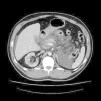 En la exploración física destacaba epigastralgia marcada. Recuento celular : 50 leucocitos (65% PMN), amilasa 423 UI. Otros datos analíticos: Leucocitosis 25700 (92% de neutrófilos), Urea 106 mg/dl, Creatinina: 9,4 mg/dl, PCR: 24 g/l, Amilasa: 173 UI/l. Cultivos de líquido peritoneal negativos. Ante la presencia en líquido peritoneal de amilasas > 100 UI/l y la sospecha clínica de pancreatitis se efectuó TAC abdominal : Rarefacción de grasa peripancreática y gran cantidad de líquido libre fundamentalmente peripancreático y perihepático. (Figura 1). Inicialmente evolucionó favorablemente. Se mantuvo en diálisis peritoneal y se descartaron causas metabólicas o infecciosas de la pancreatitis. 4 días después del ingreso el paciente presentó fiebre, y líquido peritoneal con más 100 leucocitos ( 80% PMN / Amilasas < 100 UI). Ante los antecedentes de una peritonitis previa por Staph. Epidermidis con recaída posterior, se decidió retirar catéter peritoneal y transferir a hemodiálisis. La evolución posterior fue favorable, con desaparición de la fiebre y mejoría clínica.