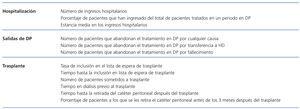 - Fórmula: Suma de pacientes prevalentes a 31 de diciembre del periodo anterior más altas en DP durante el año de estudio.
