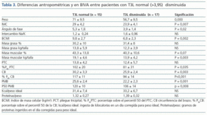 En la actualidad, seguimos sin disponer de un marcador fiable de masa muscular y de catabolismo proteico en pacientes en diálisis, ya que la creatinina sérica o la generación de urea pueden estar influenciadas por la dosis de diálisis. Según recomienda la ISRNM18, la pérdida de masa muscular debería estar incluida dentro de los criterios de PEW, ya que puede tener una gran importancia clínica y pronóstica. Dada la buena correlación encontrada en nuestro estudio entre los niveles de T3L y las medidas de masa muscular, y teniendo en cuenta que probablemente los niveles de T3L varían rápidamente en caso de enfermedades con catabolismo, nosotros proponemos utilizar los niveles de T3L como un indicador precoz de catabolismo y como un marcador para medir la respuesta a determinadas acciones terapéuticas destinadas a frenarlo, como, por ejemplo, para evaluar la respuesta a la administración de suplementos nutricionales o a sustancias anabolizantes.