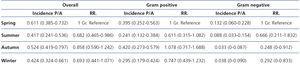 The incidence of Gram-negative PI, throughout the year, is heterogeneous, risk appears to increase in Spring by up to four times (compared with Autumn) and three times (compared to Winter).