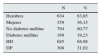 | Diabetes (sí) | 99 (14,6%) | 90 (29,51%) | 0,0000 |