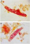 We are presenting the case of a 62-year-old male patient with history of diabetes mellitus, who attended the peritoneal dialysis clinic for follow up and blood work (blood cytology and blood chemistry) and urinalysis were obtained. The results of the blood work were as follows: haemoglobin 11.8 g/dl (12−15 g/dl), glucose 60 mg/dl (70−110 mg/dl), urea 85.5 mg/dl (10−50 mg/dl), creatinine 2.9 mg/dl (0.6–1.3 mg/dl), BUN 39.95 mg/dl (7−18 mg/dl), uric acid 4.2 mg/dl (2.6–7.2 mg/dl), total cholesterol 252 mg/dl (120−200 mg/dl) and triglycerides 220 mg/dl (70−150 mg/dl). The results of the urinalysis were proteinuria (>300 mg/dl) and haematuria (200 red blood cells/μl). Microscopy of the sediment confirmed the haematuria (10–15 erythrocytes/field under a high-dry lens) and also found oval fat bodies, fat droplets (lipiduria), yeasts, squamous, urothelial and kidney cells, and a large variety of casts, including waxy, red blood cell, granular, white blood cell, lipid and hyaline cases (Fig. 1), with the presence of a cast with a waxy matrix and large number of vacuoles that was identified as vacuolar denatured casts (Fig. 2), which is being of particularly rare