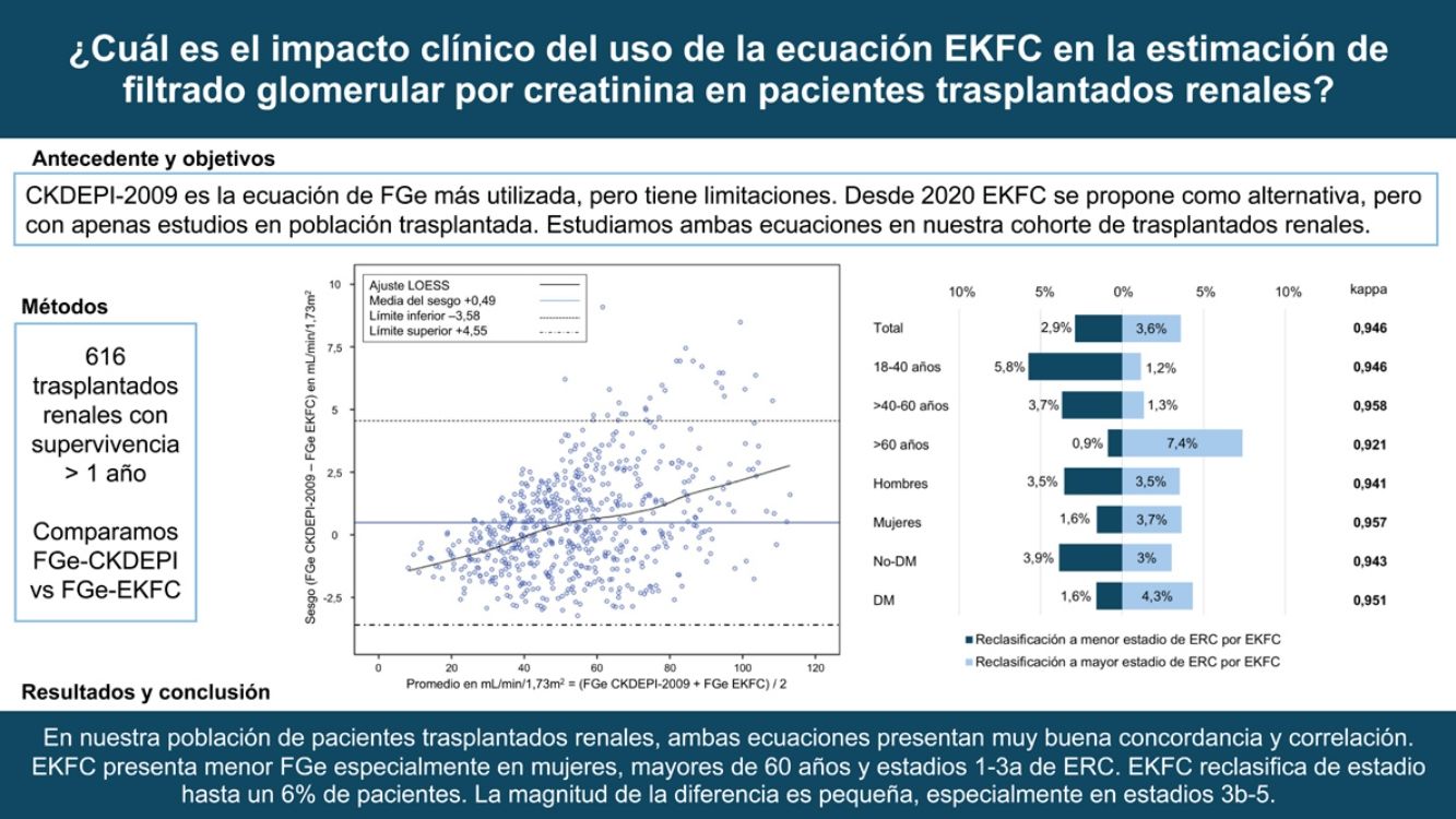 ¿Cuál es el impacto clínico del uso de la ecuación EKFC en la estimación de filtrado glomerular por creatinina en pacientes trasplantados renales?