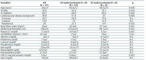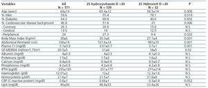 Table 2. Demographic, clinical, and analytical variables by normal or low levels of 1-25 hydroxyvitamin D