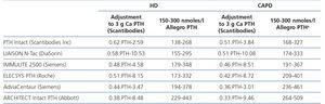 Table 1. Configuration and reference range of the different commercial methods used to quantify parathyroid hormone