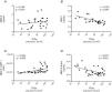 No se observó que existiera correlación entre los niveles circulantes totales de MMP-9 y la disminución de la función renal mediante la TFGe (r=0,198, p=0,313 panel [fig. 3A]). Por el contrario, la TFGe correlacionó de forma negativa y significativa con la concentración total de TIMP-1 (r=–0,722, p>0,001 [fig. 3B]). Además, se observó una correlación significativa y positiva entre la TFGe y la interacción proteica entre MMP-9-TIMP-1 (r=0,499, p=0,002; [fig. 3C]), de tal forma que a medida que la TFGe disminuye existe una menor interacción entre MMP-9 y su inhibidor TIMP-1. Por el contrario, la concentración de la isoforma MMP-9 activa correlacionó de manera significativa y negativa con la TFGe (r=–0,531, p=0,001 [fig. 3D]). Por lo tanto, a medida que la función renal disminuye la cantidad de TIMP-1 se eleva y, a pesar de ser este un inhibidor fisiológico de MMP-9, este no interactúa con esta enzima, favoreciendo que la actividad de esta metaloproteinasa proinflamatoria se vea incrementada. Tras ajustar todos estos parámetros de remodelado por el sexo y/o la edad de los pacientes, solamente los parámetros TIMP-1 total o MMP-9 activa mantuvieron estas correlaciones significativas (tabla 2).