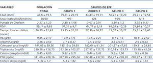 El objetivo del estudio fue evaluar la posible asociación entre la EPP, el número de episodios de peritonitis y el D/P de fósforo en una población mexicana en DP continua ambulatoria.