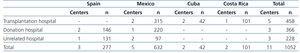 We observed a more positive attitude in professionals of Latin American centres than in those of Spanish centres (Table 2). Thus, 98% (n=41) of Cubans surveyed, 80% (n=503) of Mexicans and 66% (n=67) of Costa Ricans were for donation, compared to 52% (n=143) of Spanish (P<.001).